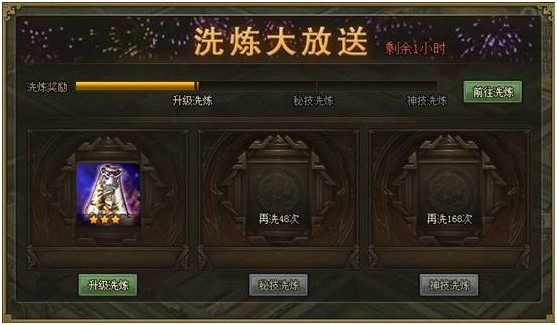 2. 累积洗炼次数,获得特殊洗炼:洗炼次数(*注意:本活动所赠免费至尊洗炼不计在内)累积达到以下目标,即可逐次获得3大特殊洗炼