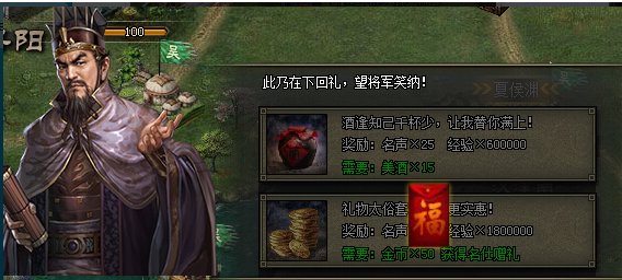 1. 结交名士奖励:每次结交名士,可随机获得经验、粮食、镔铁、兵营区翻倍令的其中一种