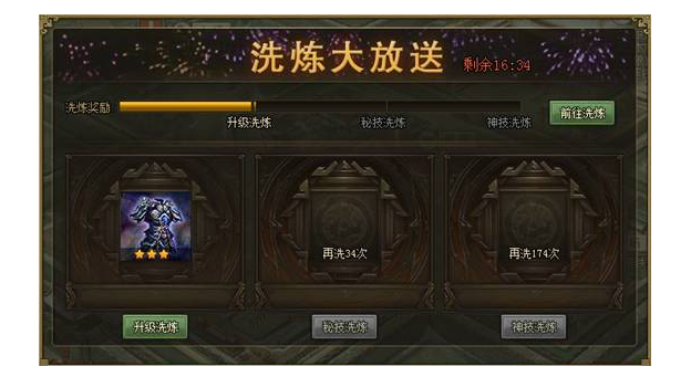 活动内容:活动期间每一天,达到以下装备洗炼要求,即可获赠免费至尊洗炼次数,并获得特殊洗炼机会。
