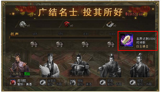3. 名声累积满了将不再继续增加,名士也将不再刷新。