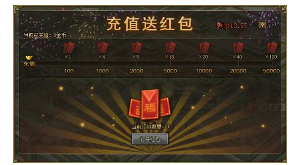 累计充值满2000金币,再送5个红包