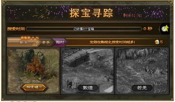 1. 通过获得新手、老手古城中的宝箱,可以累积一部分免费探索时间,也可以花费金币购买额外时间;