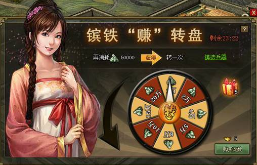 通过消耗镔铁达到一定数量,可获得镔铁转盘次数。摇动转盘,随机获得不同数量的镔铁奖励!摇够一定次数的转盘,还可获得额外奖励!