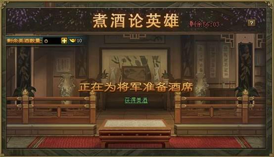 举办宴席:有酒的玩家在选定一种酒后,可开启宴席进入等候列表,等待其他玩家选择进入(3分钟后没人参宴,则宴席自动解散)。