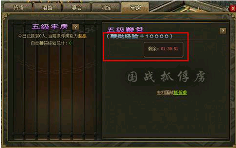 2. 领取鞭笞经验加成buff后,牢房界面效果显示