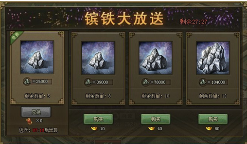 1. 免费兑换:击败世界地图上的“逃兵”(逃兵出现时间和地点,可在活动面板上查看),收集“镔铁券”,即可进行大量镔铁的免费兑换;