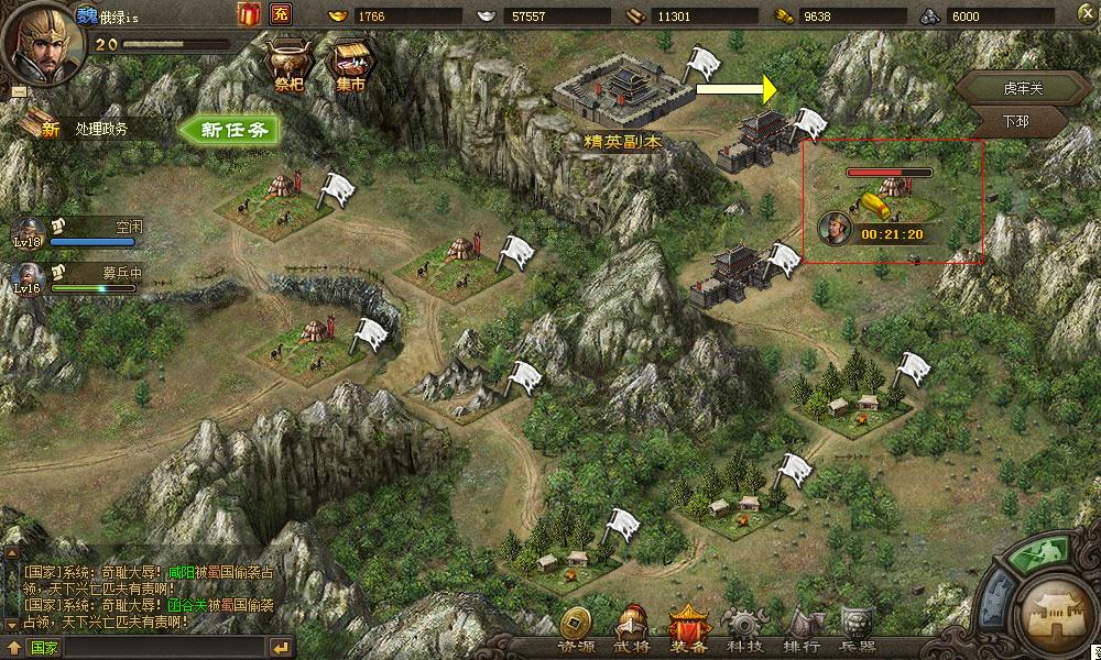 击败张济之后就会出现农田,农田的作用主要是产出粮食,发动攻击或为武将补充兵力都需消耗粮食。根据主线任务升级农田建筑,增高粮食产量到900/小时。接着去副本击败“徐荣”。击败之后,装备购买开放“战马,披风,军旗”装备到武将上。武将能力会得到大的提升。