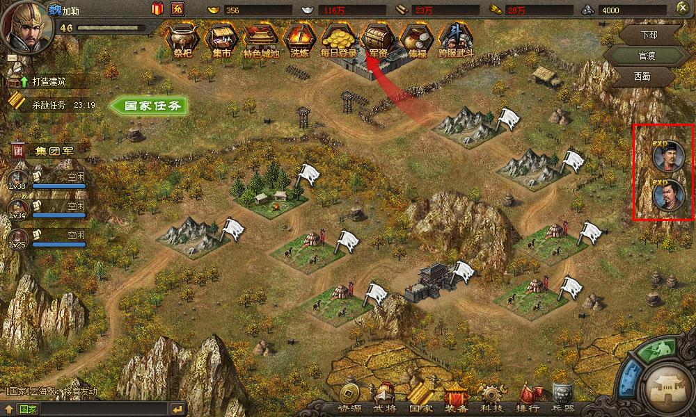 c. 国家任务:完成每个国家任务根据自己的国家等级及排名获得大量的经验。