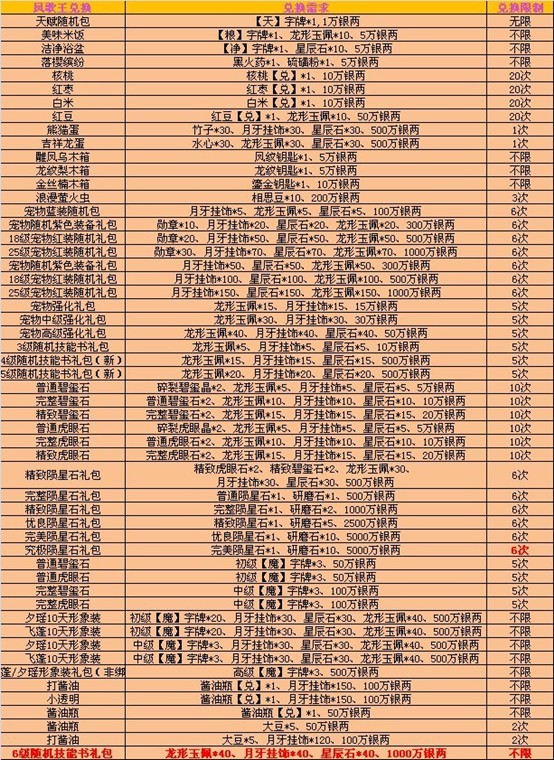 【活动内容】:活动期间,凤歌王兑换开启,本次增加了6级随机技能书的兑换!有兴趣的童鞋莫要错过哦