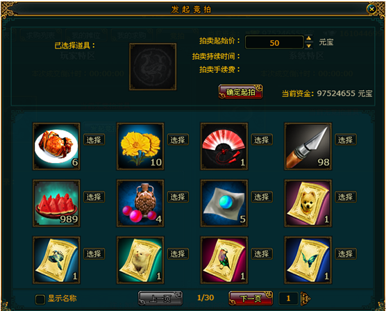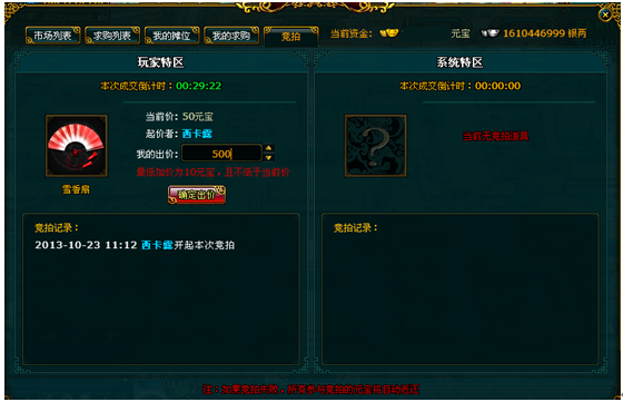 3、开起竞拍的手续费为50元宝,无论竞拍成功与流拍,发起竞拍需谨慎;