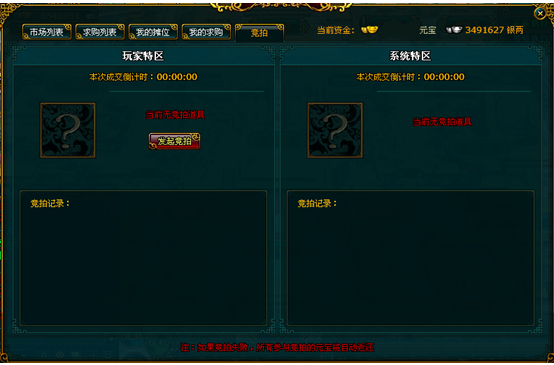 2、发起竞拍时,道具将会暂时由系统保管,结束时发放到竞价成功者的礼品盒内或者发起者的背包内;