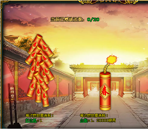 【活动内容】:爆竹声中一岁除 春风送暖入屠苏!活动期间,《宫廷计》限时增加新春放爆竹功能!广大玩家朋友可以通过各种活动方式获得火柴与打火机, 在用小火柴与打火机放爆竹的过程中可以获得大量新春好礼哦~