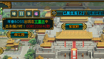 【活动内容】:新年将至,年兽出动,在活动期间《宫廷计》七个不同的地方将会出现了不同难度的年兽,帮助NPC擒下这些年兽将会在新年获得各种好运哦~注意请先接“马上”任务哦~