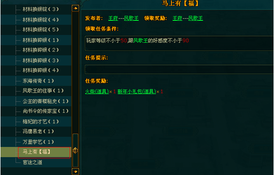 3、任务为承接任务形式,需从马上有【禧】开始,才可接到后面的任务;