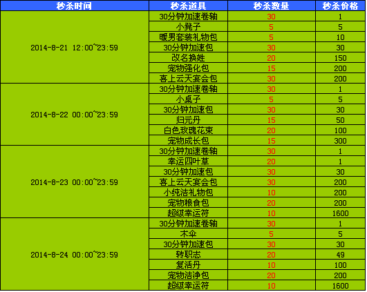 2、秒杀区仅在活动期间内开放;被秒杀的道具均为绑定道具;