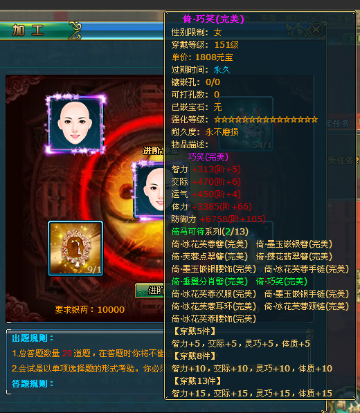 1.要想对散装开始进行进阶,你的背包中必须有150级完美属性的散装。即散装从150级开始便无需再进行换装了,通过进阶就可直接提升散装是属性和穿戴等级。