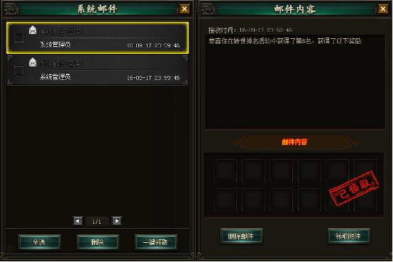 3.点击“一键领取”可收取所有附件内容奖励。