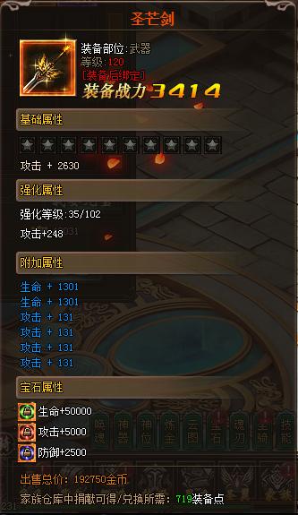 1.非绑定装备tips新增装备点描述,如图:家族仓库中捐献可得/兑换所需:719装备点。