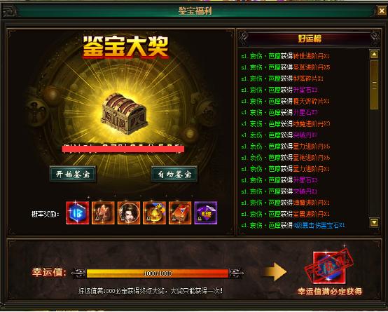 活动内容:鉴宝大礼面向各位冰火世界的玩家们,幸运值满1000必得超值大礼极光敏捷符文*1。