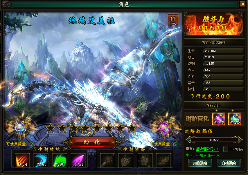 5.新增坐骑11阶琉璃艾美拉、12阶烈日库玛
