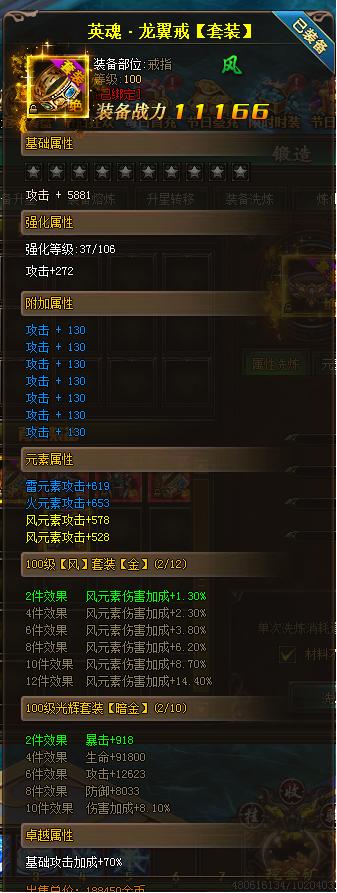 5.当元素洗炼后就会出现元素套装属性