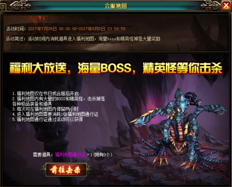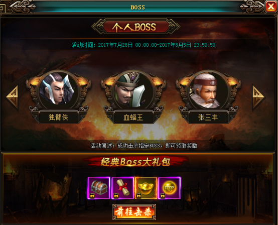 活动内容:通过击杀活动中对应的BOSS来完成领取条件,获得丰厚奖励
