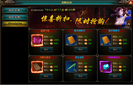 100 | 高级气海 | 限时经验丹 | 玄功进阶丹*150 | 100万铜钱 | 4倍1小时 |
