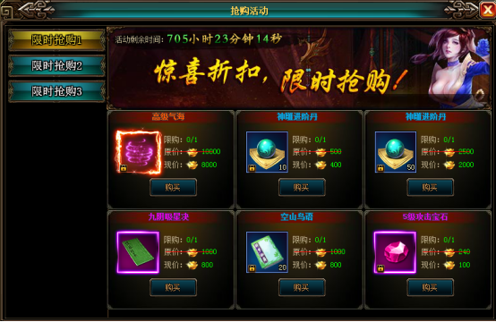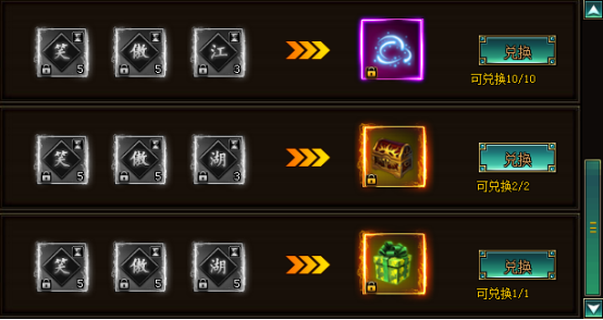 活动内容:通过消耗福利地图通行证或者200元宝进入福利地图获取兑换材料,在兑换活动中兑换珍稀道具。