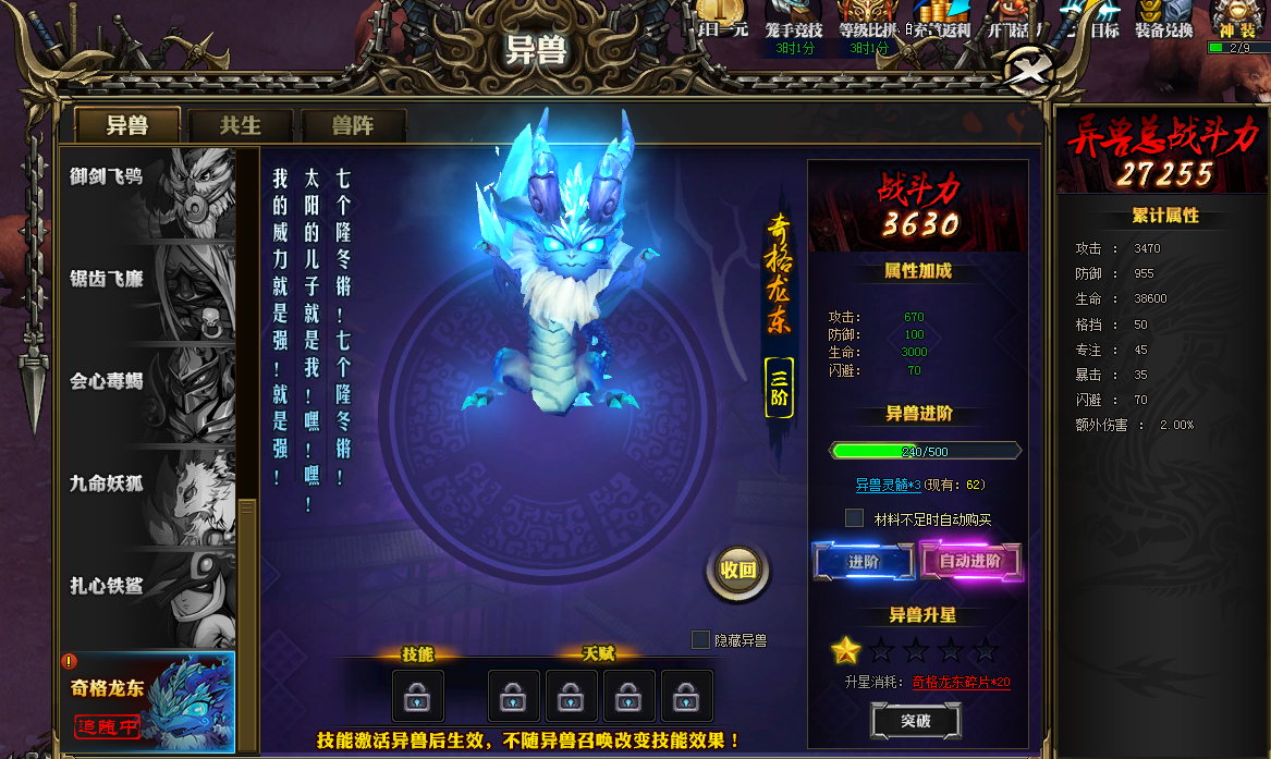 活动内容:限定的时间内达成条件可获得孵化的进度,孵化满后可获得异兽(通过邮件获得道具), 限定时间都结束后,可以通过累充来补进度