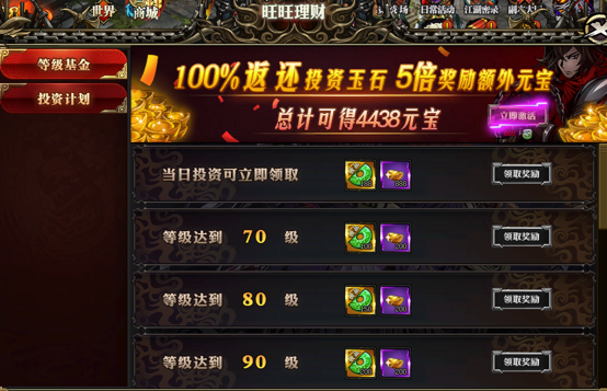 活动规则:等级基金在活动规定时间内进行投资达到等级要求可获取玉石和元宝奖励
