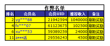 以下为作弊玩家名单: