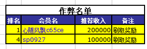 以下为作弊玩家名单: