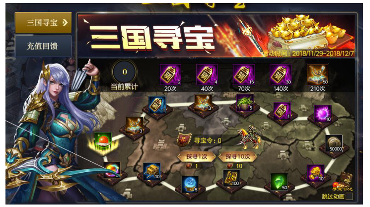 除寻宝获得物品外,每次抽奖都可积累次数,达到一定次数可获得积累好礼。