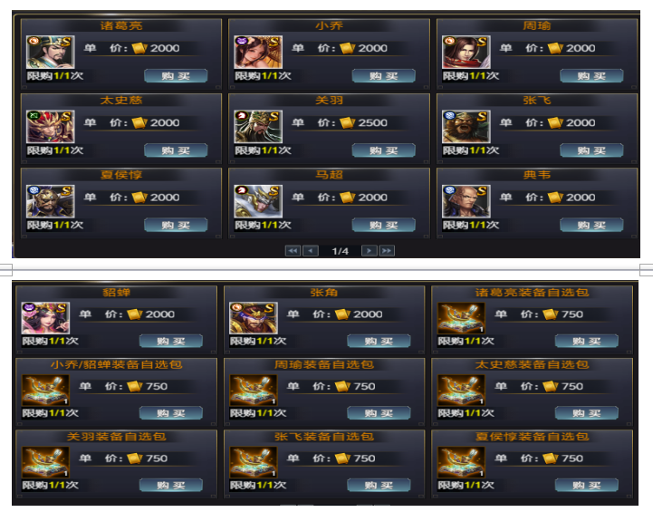 4 | 350 | 90资质武将装备箱 | 抽奖券X10 | 技能残卷包X50 | 将魂X250 |