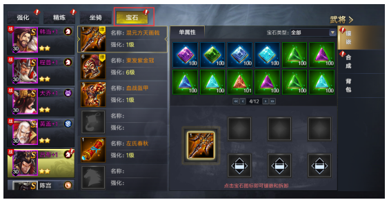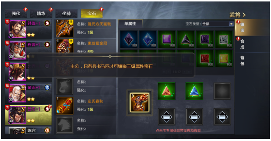 更新后,主公可以在打造面板看到宝石栏,如下图所示: