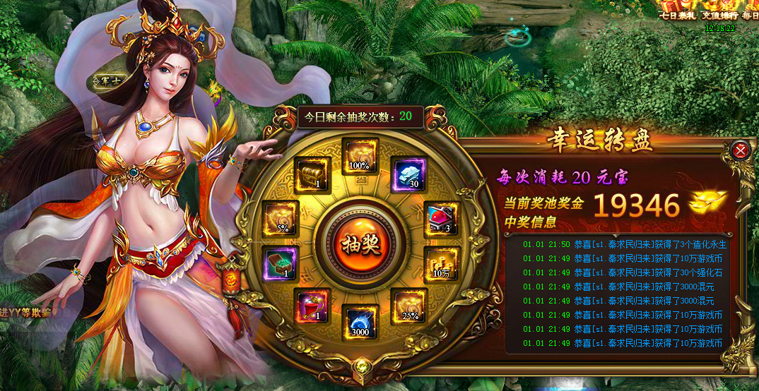 l 活动内容:通过少量元宝有几率获得大量的元宝哦,还能获得非常超值的道具奖励