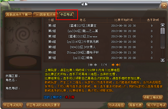 比赛开始时,您可以通过小地图旁边的【战】按钮→【中忍考试】→传入中忍考试,来传入到中忍考试中。或者点击页面上的中忍考试入场提示按钮进入战场。