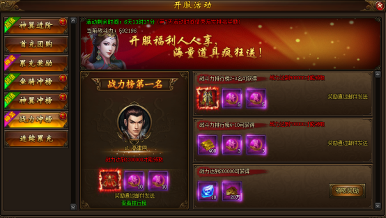 活动期间,根据玩家战力排名,排名越高奖励越好