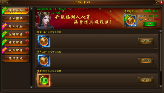 活动期间,神翼达到指定阶数可领取大量的进阶道具