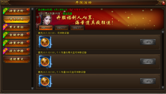 活动期间,首充人数达到一定数量全服玩家可领取对应奖励