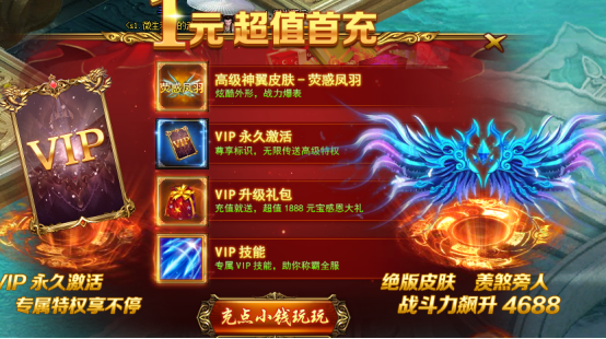 活动期间,玩家只要充值1元就能获得首充豪礼,皮肤、神器享不断。