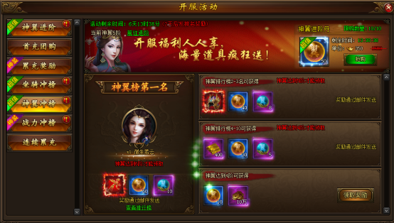 活动期间,根据玩家神翼阶数排名,排名越高奖励越好