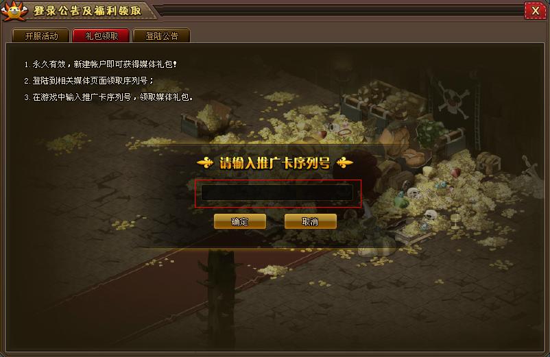 在红色的框框里输入礼包号,即可领取礼包。记得要保证背包有空位哦。