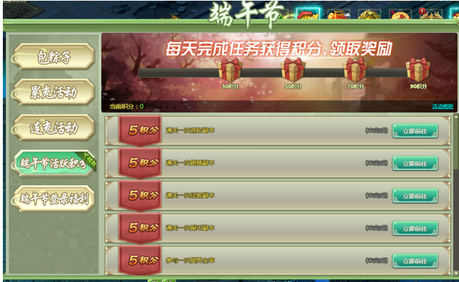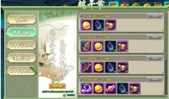 1. 活动期间,玩家可在互动界面划龙舟,每次划龙舟需要消耗一个粽子