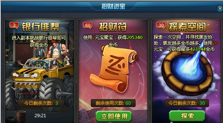 1.银行匪帮——这个是人气活动里的银行匪帮的缩小单机版,5分钟搞定他你就能获得一笔金币收入;
