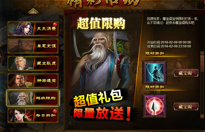 活动内容:活动期间藏宝室限时出售技能、宝石等道具。