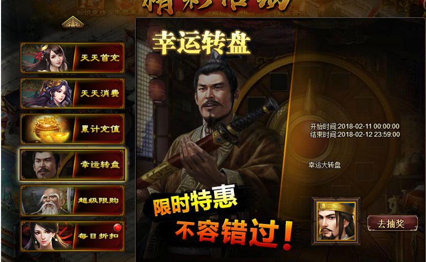 活动内容:活动期间转盘限时驻留诸葛亮。