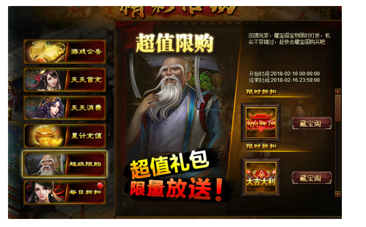 活动内容:活动期间藏宝阁限时出售新年称号等道具。
