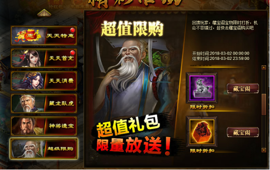 活动内容:活动期间藏宝阁限时出售官印等道具。