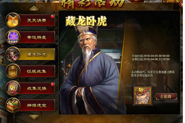 活动内容:活动期间酒馆限时驻留金色武将张角,PVP强力推荐。